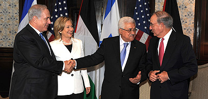 מיטשל, אבו-מאזן, קלינטון ונתניהו (צילום: משה מילנר, לע"מ)