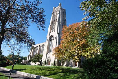 מבנים גותיים בסגנון אוקספורד בקמפוס אוניברסיטת שיקגו