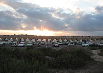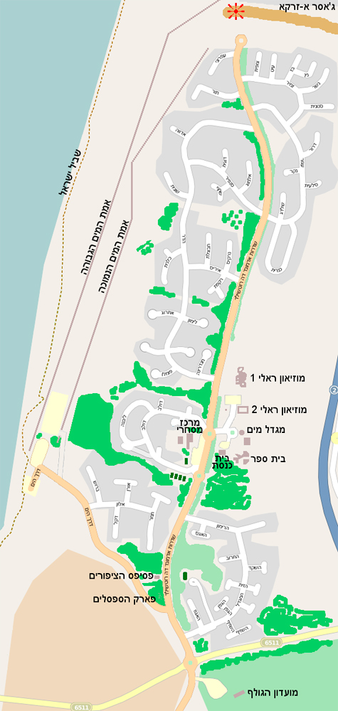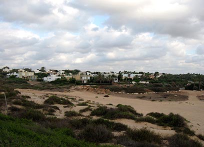המשכנו לצעוד צפונה בשדרה, ובדיוק לאחר שני קילומטרים היא הסתיימה במעגל תנועה שמעברו חולות. 100 מטרים מצפון לשם נמתחת סוללת עפר גבוהה למדי, החוסמת את הנוף צפונה. טיפסנו אל עמדת תצפית על ראש הסוללה, ובתיו של הכפר ג'אסר א-זארקא נפרסו ממש לפנינו, במרחק של כ-30 מטרים. הבטתי צפונה אל בתי ג'אסר ואל הכרמל שברקע, אחר-כך דרומה אל קיסריה ואל ארובות תחנת הכוח בחדרה, אחר-כך שוב צפונה ושוב דרומה.