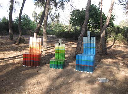ממש מדרום לפסיפס, בחורשה קטנה שוכן "פארק הספסלים" שבו ספסלים צבעוניים, העשויים מחומרים ממוחזרים ומפסולת תעשייתית מאזור התעשייה של היישוב. מהחורשה שנמצאת ממש בשדרות רוטשילד, יצאנו שוב אל השדרה, פנינו שמאלה (צפונה), ולאחר הליכה קצרה של 750 מטרים חזרנו אל נקודת ההתחלה.