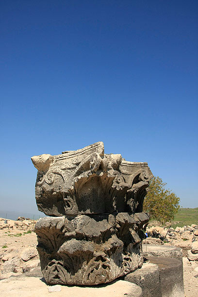 שריד מקושט של כותרת עמוד שעוצבה בסגנון קורינתי (צילום: חנן ישכר)