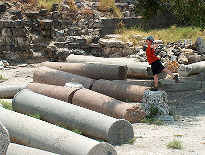 מבקר קטן באתר. שימו לב לגודלם העצום של העמודים (צילום: עומר יגאל)