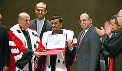 אחמדינג'אד מקבל את התואר (צילום: press.tv)