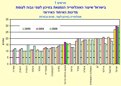 דו"ח הלמ"ס: הסיכון להיות עני בישראל בשנת 2008 היה גבוה פי שניים בהשוואה לאיחוד האירופי, והפער בין הכנסות החמישון העליון לתחתון זינק לפי 7.5. אי השוויון בישראל חמור ב-60% לעומת אירופה. למרות הכל, הישראלים הרבה יותר מרוצים מחייהם לעומת האירופים, ובטוחים שבעתיד ישתפר מצבם