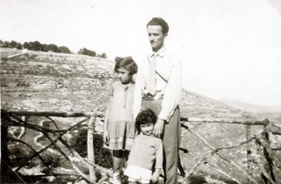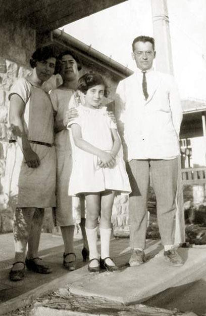ירושלים, בית הכרם. מלפנים, ראומה אצל השכנים, משפחת ראובני. הסופר אהרון ראובני עומד מימין. הוא גם אחיו של הנשיא השני יצחק בן צבי.
