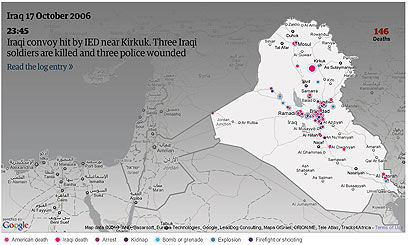 מוקדי אירועים אלימים בעיראק ביום בודד (מתוך אתר ה"גרדיאן")