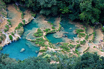 מפגש של שני נהרות יוצר מפלים מרהיבים. Semuc Champey