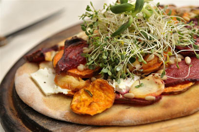 - הפוקאצ'ה: מסדרים על בצק הפוקאצ'ה, בשכבות, את ירקות השורש שתי וערב, וביניהם לסירוגין, מניחים מוצרלה וגבינת פטה.