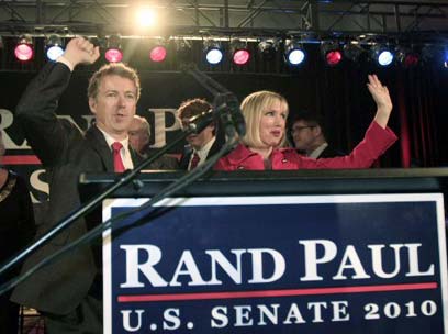 רנד פול, מכוכבי "מסיבת התה", חוגג את ניצחונו הלילה (צילום: רויטרס)