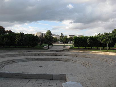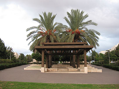 סביבה רחבת דשא המשקיפה אל עמק הנחל. אתר ההנצחה העירוני