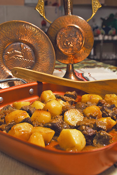 - מוסיפים עוד מעט מים חמים (לפי הצורך) וממשיכים לבשל עד שתפוחי האדמה ראויים לאכילה.