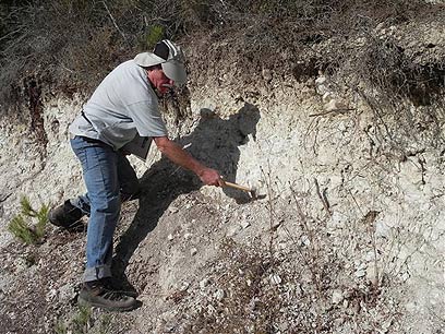חמושים בפטישים גיאולוגיים (טוב, לא גיאולוגיים, רק כאלה שדופקים מסמרים של תמונות), יצאנו לחקור את סוג הסלעים והאדמה שמתחת לרגלינו. לצורך כך קיבלנו בקבוקונים קטנים המכילים חומצה מלחית של 5 אחוז, והתזנו טיפות ספורות על שברי הסלעים ורגבי האדמה שחצבנו בכדי לבדוק האם קיים בהם מינרל ששמו קלציט, שבמגע עם החומצה תוסס.