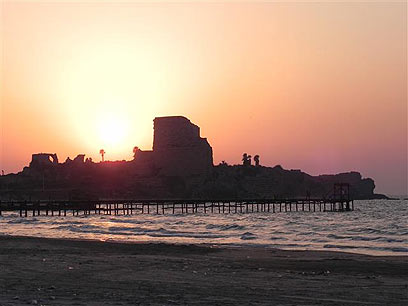 המבצר שנבנה מסלע הכורכר. עתלית בשעת בין השמשות