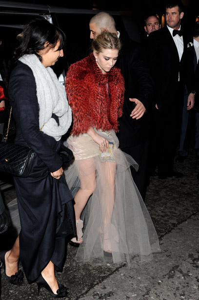 מרי קייט אולסן, שעברה מספיק פעמים במדור, מוכרזת בזאת סופית כמועמדת רצינית לרשימה השחורה, ולא רק בגלל הפרווה. ברור לגמרי שפרווה היא הדבר היחיד שבאמת יכול לחמם את עצמותייך הבולטות ולהחליף את השומן שאמור להיות בגופך ואבד אי שם בשנות ה-90 כשהפסקת לאכול. אבל היום יש תחליפים הרבה יותר טובים, גם לאי-אכילה וגם לפרווה. חוץ מזה שזה גורם לך להיראות רע מאוד, לא רק בגלל הפרווה האדומה והכעורה שאת לובשת, אלא בגלל האאוטפיט כולו שמזכיר למעצב(נ)ת ימים עברו עת היתה הולכת לשוק ומסתבכת עם שקיות הניילון, עד שהחליטה להיות ירוקה ולהשתמש בסלים.