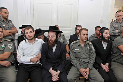 החשודים בבית המשפט. עשרות נוספים ייחקרו (צילום: נועם מושקוביץ)