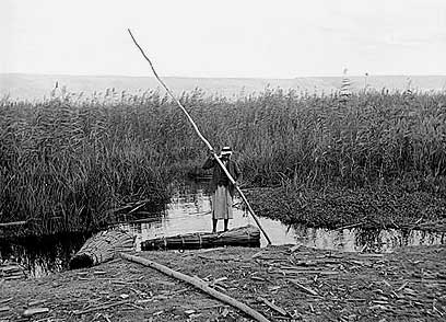 2. שיט על ערימת פפירוס, באגם החולה, 1926, צלם: יעקב בן – דוב, ארכיון קק"ל