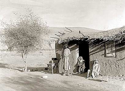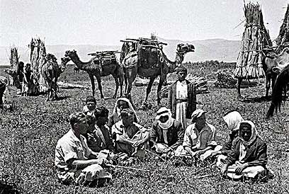 3. בדואים ליד בקתת הבוץ, אגם החולה, 1938, צלם: אברהם מלבסקי, ארכיון קק"ל