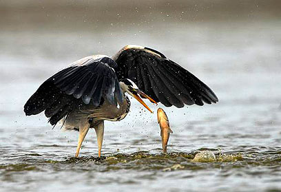 18. אנפה אפורה בשעת דייג. אגמון החולה, 2007, צלם: יוסי אשבול
