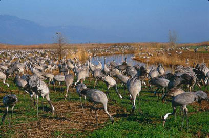 15. להקת עגורים, בשדה מוצף. אגמון החולה, 2008, צלם: יוסי אשבול