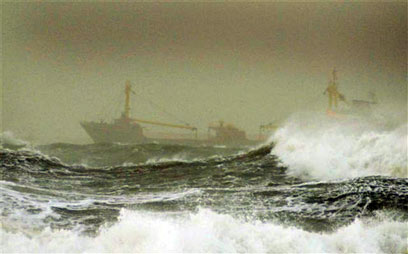 הספינה המולדובית בים סוער (צילום: אבי רוקח)
