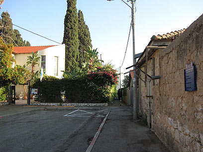 מימין - חומת מבנה החאן. משמאל - ביה"ס גבע