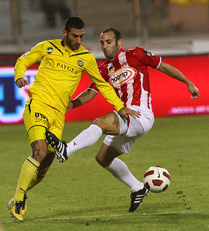 אבי יחיאל מנסה לעצור את אלירן עטר (צילום: אלי אלגרט)