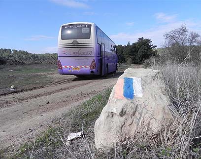 דרכי מטיילים בחבל לכיש. האוטובוס של קורס מורי דרך "חלמונית" בחנייה