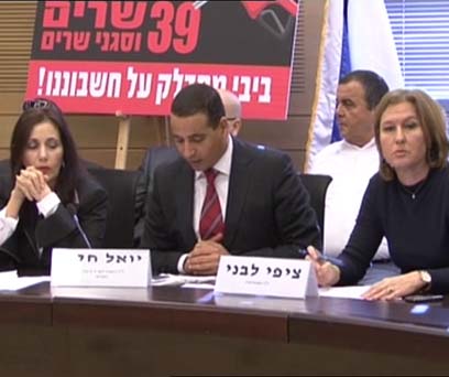 חברי הכנסת ציפי לבני, יואל חסון ויוליה שמאלוב-ברקוביץ.