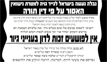 הקרב על הגיורים הצבאיים מגיע לרחוב. אחרי שהליטאים תקפו בחריפות רבה את הרב עמאר, תומכיו משיבים בפשקוויל על בתי דין בבני ברק: "מבצעים גיורים עבור תאוות בצע"