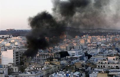 עשן מיתמר ברחובות תוניסיה. אובמה הוקיע את האלימות (צילום: AP)