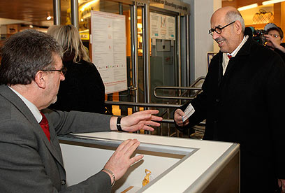 שב לארצו כדי להפגין. אל-בראדעי בנמל התעופה בווינה (תצלום: רויטרס)