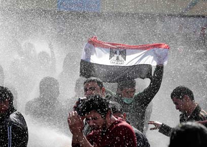 סילוני מים בקהיר, במחאה נגד משטר מובארק (צילום: AP)