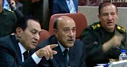 מובארק עם סגנו סולימאן. "מנסה להבין איך הכל התהפך" (צילום: רויטרס)