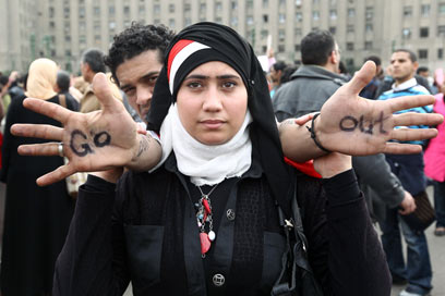 "מובארק, לך הביתה". מפגינים בכיכר א-תחריר בקהיר (צילום: AFP)