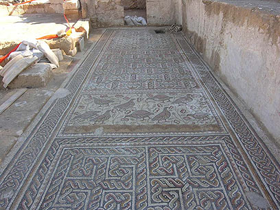 רצפת הפסיפס שהתגלתה בחורבת מדרס (צילום: באדיבות רשות העתיקות)