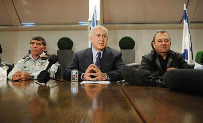 עדיין מחכה בפינה. ברק, נתניהו ואשכנזי (צילום: ירון ברנר)