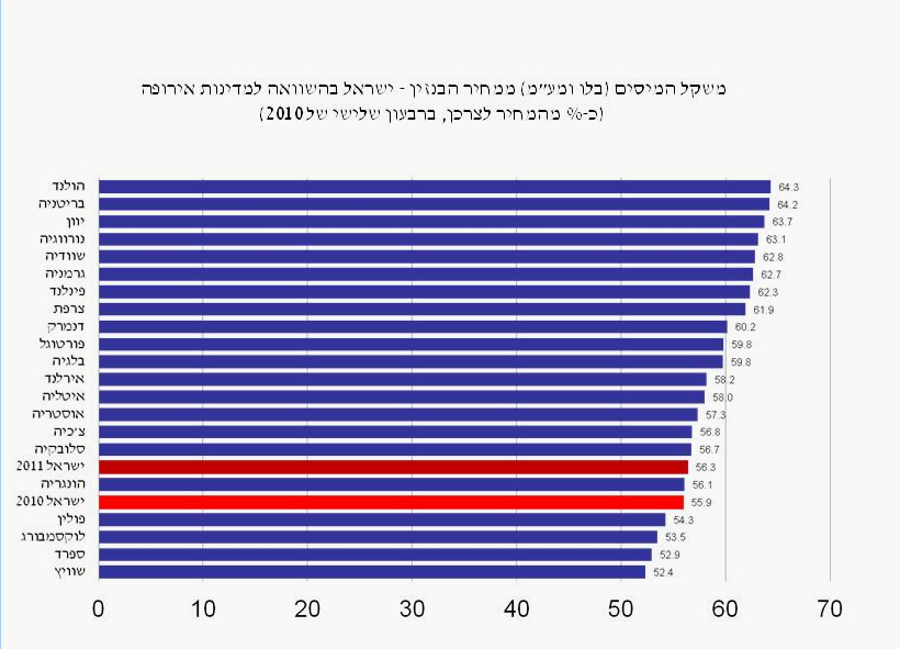 ליטר בנזין בישראל ובאירופה. לצפייה בגודל המלא - לחצו כאן (מקור: האוצר)