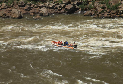 בסירת המרוץ מתקרבים למפל הגועש ביותר בפארק - לוע השטן