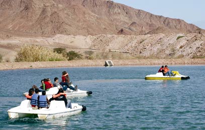 אגם מלאכותי שמעניק מראה של נווה מדבר. אגם נחושתן (צילום: קק"ל)