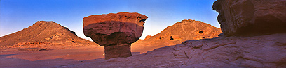 מבקרים במערת הכורה המצרי, מטפסים אל מרפסת תצפית וזוחלים בפירי הנחושת העתיקים. נטיפי טורקיז נשפכים על גבי האדמה החולית ומגלים את סוד מרבצם. בורות מגודרים שאי אפשר לראות את תחתיתם מסתירים בבטן האדמה מחילות ארוכות, שמהן הפיקו את הנחושת והעלו אותה על פני הקרקע. המסלול ממשיך דרך הפטרייה הענקית שנוצרה בשטח כתוצאה מבלייה של אבני חול אדומות. הרוחות והמים הפרידו את גוש הסלע מן המצוק שהיה חלק ממנו. חלקה התחתון של הפטרייה התפורר וכך נוצרה כיפה שעומדת על רגל אחת.