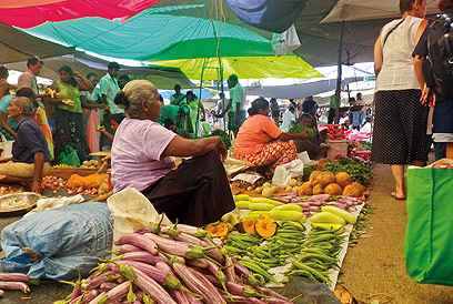 שלא כמו בהודו, פה לא תמצאו ילדים המקבצים נדבות. שוק טיפוסי בסרי לנקה