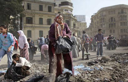 מצרים יוצאת לדרך חדשה - וארוכה. מנקים את רחובות קהיר (צילום: AP)