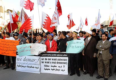 "רוצים דמוקרטיה אמיתית". מפגינים בבחריין אתמול (צילום: AFP)