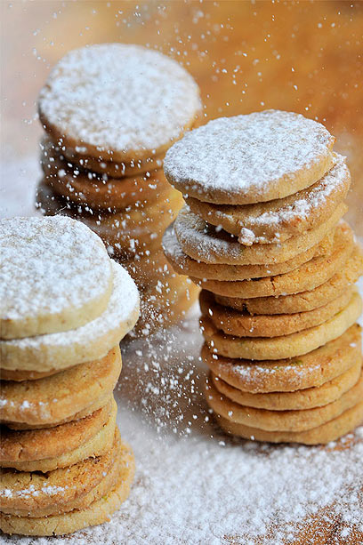 - בוזקים אבקת סוכר מעל לעוגיות לפני ההגשה.