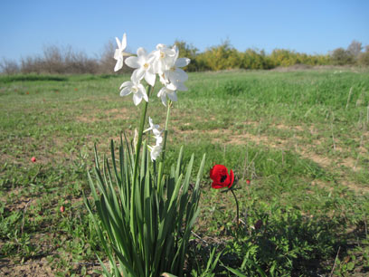 עונת הפריחה שבעיצומה זימנה לנרקיס הלבן חברה בדמות כלנית אדומה. שלושה מכם זיהו שהפריחה היא ביער שוקדה שבנגב, וגם זכו בפרסים. פרטים על מסלול הטיול בפנים
