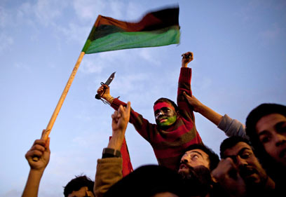 למעלה מאלף נהרגו במהומות. מפגינים נגד קדאפי בטוברוק (צילום: AP)
