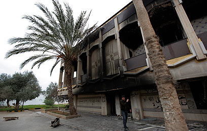 מעונו השרוף של קדאפי בבנגזי (צילום: AP)