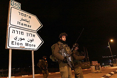 כוחות צה"ל סמוך לאיתמר, הלילה (צילום: עידו ארז)