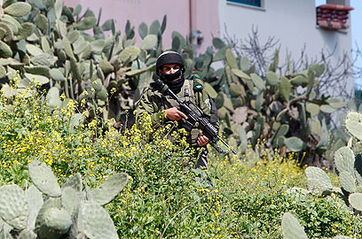 חייל צה"ל סורק סמוך לאיתמר אחר המחבלים (צילום: רויטרס)