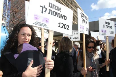 הפגנת הנשים מחוץ לבית המשפט (צילום: עופר עמרם)